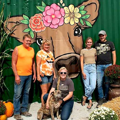 The entire family is actively involved with all aspects of dairy farming and the corn maze-and you'll see them feeding cattle, scraping the cow lot, picking pumpkins, mowing the maze, and demonstrating the tricycle track or pumpkin slingshot.
